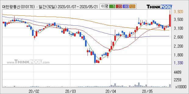 대한광통신 : 중국 5G에 10조 투자 소식에 수혜주로 부각