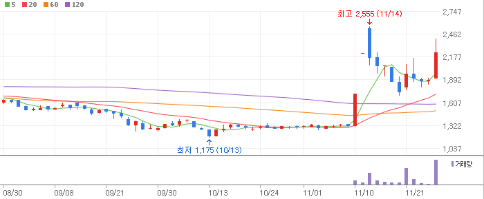 | 2022.11.24 상한가 종목 분석 (래몽래인, 위지윅스튜디오, 엔젯, 대보마그네틱 등) (0) | 2022.11.24 |