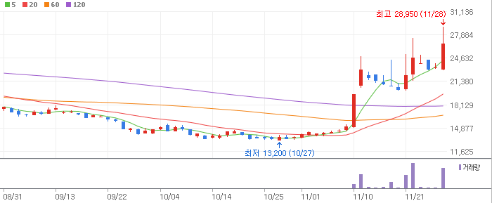| 2022.11.24 상한가 종목 분석 (래몽래인, 위지윅스튜디오, 엔젯, 대보마그네틱 등) (0) | 2022.11.24 |