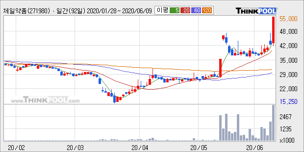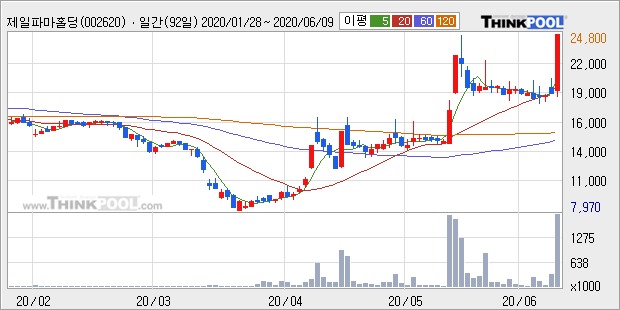제일약품 : 일본에서 렘데시비르보다 600배 강력한 '나파모스타트' 임상 착수 소식에 강세