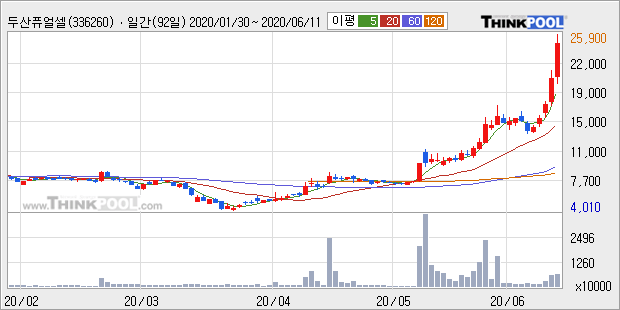 두산퓨얼셀 : 미 증시 수소연료전지 니콜라 강세에 따라 관련주 강세
