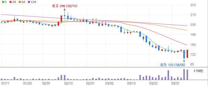 오가닉티코스메틱 : 대규모 영업손실 및 낙폭과대 외 특이사항 없어 보임