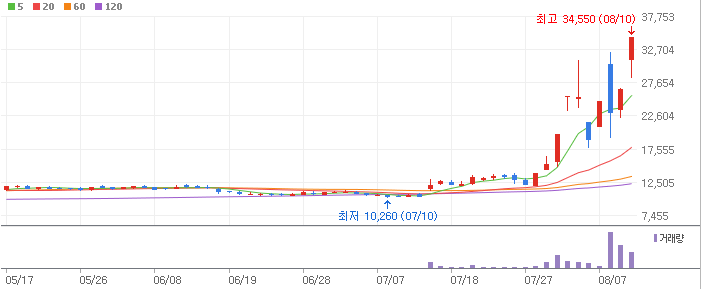 상한가 분석 (마녀공장,에이프로젠,신성델타테크,제이준코스메틱 등)