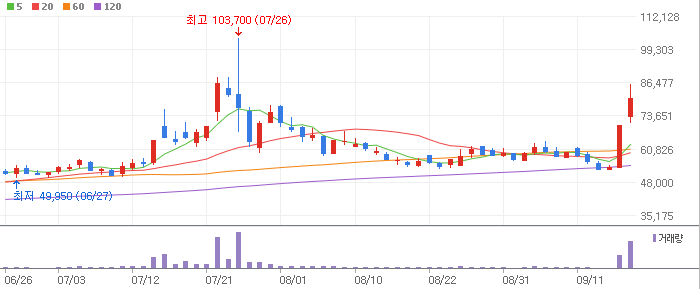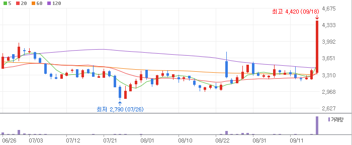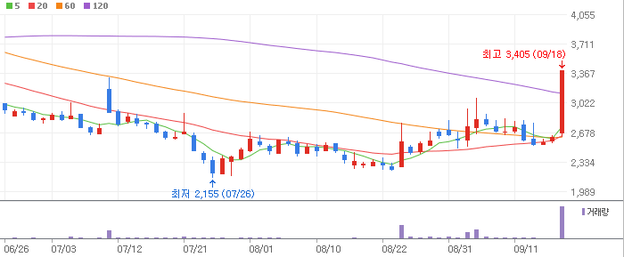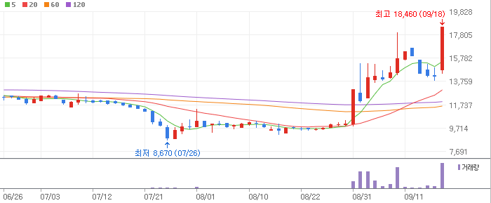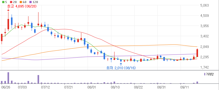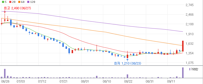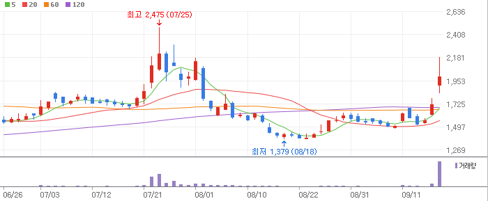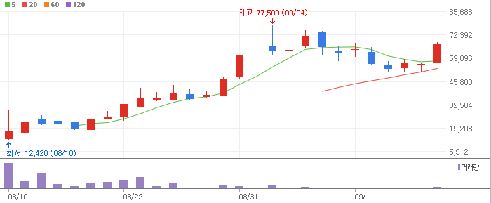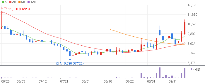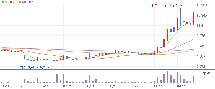 노을 : 유상증자 청약률 105.48% 기록 소식에 강세