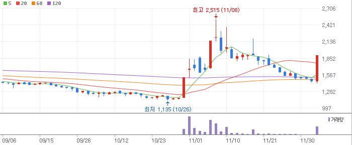 | 2023.11.30 상한가 종목 분석 (한농화성,태양금속,레몬,텔레필드 등) (0) | 2023.11.30 |