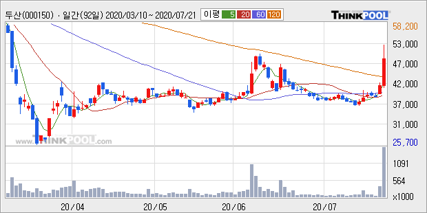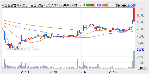 두산중공업 : 그린뉴딜 해상풍력 관련 수혜주로 부각