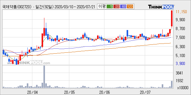 국제약품 : 덱사메타손 등 코로나 19 치료 약품 관련주로 부각