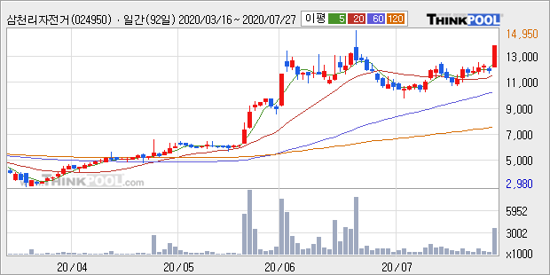 삼천리자전거 : 상반기 실적 기대감 및 그린뉴딜 수혜주로 부각 추정