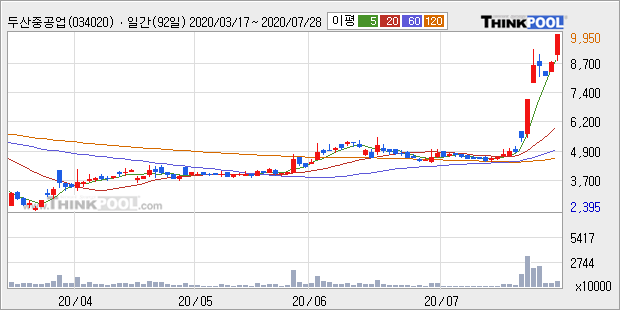 두산중공업 : 그린 뉴딜 수혜주로 부각