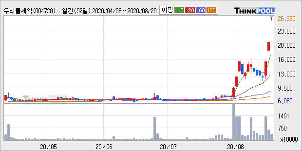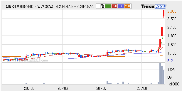 우리바이오 : 코로나 재확산 우려감에 면역력 증강 건강식품 관련주로 강세 추정