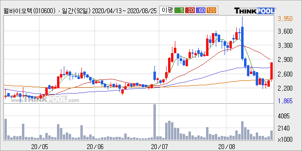 웰바이오텍 : 솔젠트와 코로나 19 진단키트 공급계약 모멘텀 부각 추정