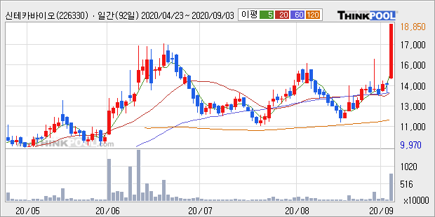 신테카바이오 : 코로나 19 후보물질 2종, 동물실험서 렘데시비르 2배 효과 확인 소식