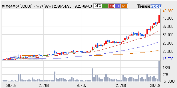 한화솔루션 : 한국판 그린 뉴딜 수혜주로 부각
