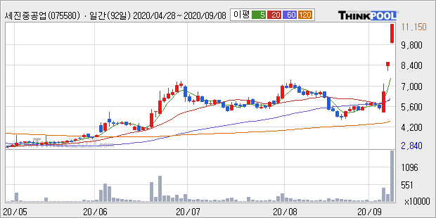 | 2020.09.07 상한가 종목 분석 (예스24, 세진중공업, 이디티 등등) (0) | 2020.09.07 |