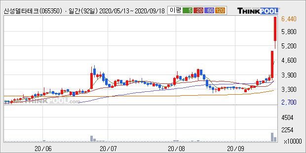 신성델타테크 : LG화학 배터리 분사 소식에 수혜 기대감 지속