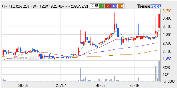 나인테크 : 테슬라배터리데이 앞두고 테슬라 장비 납품 재주목 추정