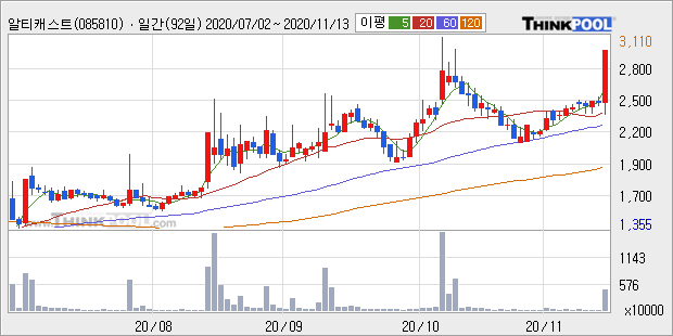 알티캐스트 : 전국에 위치한 주유소와 LPG 충전소가 전기차 충전소로 전환을 본격화한다는 소식에 강세