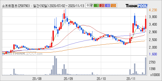소프트캠프 : 코로나19 국내 확진 환자 급증 소식에 재택근무 관련주 강세