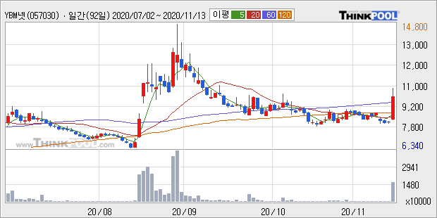 YBM넷 : 코로나 19 국내 확진 환자 급증 소식에 온라인 교육주 강세