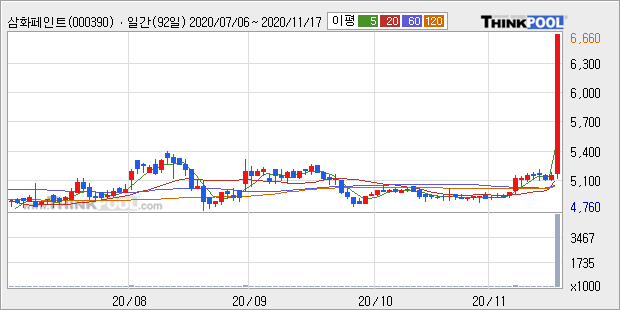 삼화페인트 : 국내 최초로 코로나바이러스에 대응할 수 있는 항바이러스(Anti-viral) 페인트를 개발했다는 소식