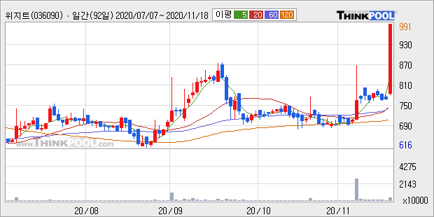 위지트 : 비트코인 등 가상화폐 가격 급등에 관련주로 부각
