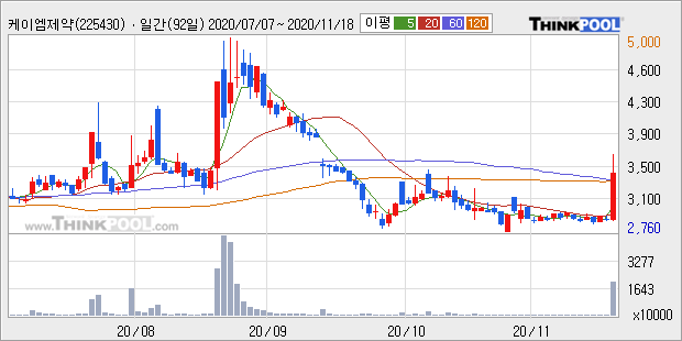 켐온 : 아스트라제네카 백신 개발 수혜주로 부각 추정