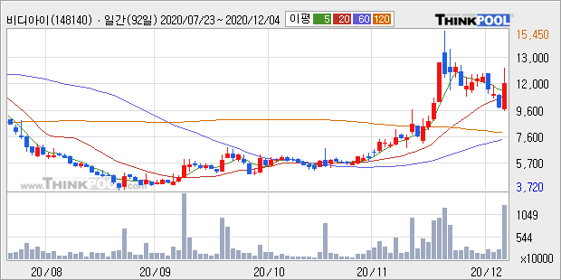 비디아이 : 자회사, 흡입식 폐암 신약 中 임상 2상 승인 모멘텀에 강세