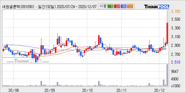 세원셀론텍 : 관계사 에쓰씨엔지니어링 강세 편승 추정