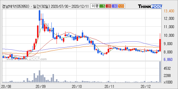 경남제약 : 링거라이트액 국내 단독 허가권 취득 소식에 강세