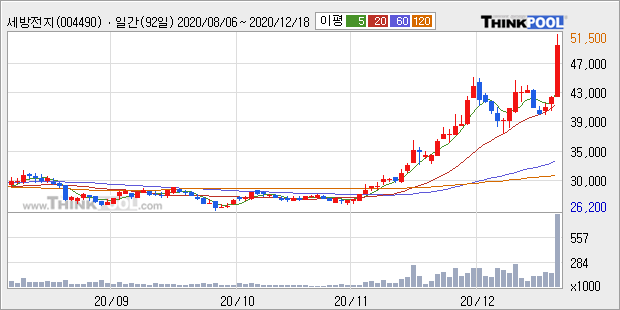 세방전지 : 자회사 2차 전지 모멘텀 부각 추정