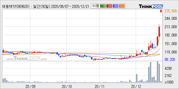 대웅제약 : 코로나 19 급속확산세 지속에 제약주 강세 추정
