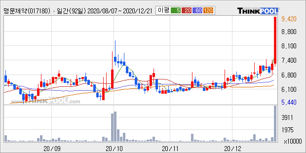 명문제약 : 코로나 19 급속확산세 지속에 제약주 강세 추정