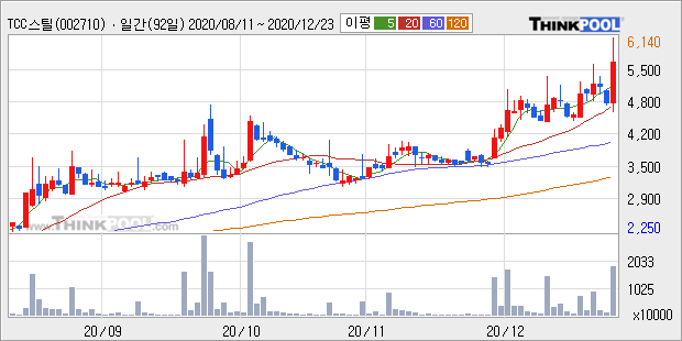 TCC스틸 : LG전자와 캐나다 자동차부품 업제 마그나와 전기차 부품 생산 합작 법인 설립 소식에 강세