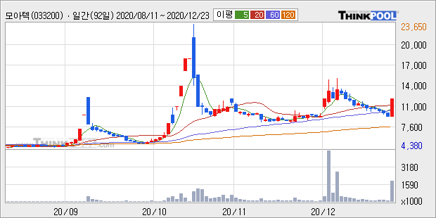 모아텍 : 애플 자율주행 전기차 시장 진출 소식에 자율주행 관련주로 강세 추정
