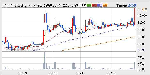 삼아알미늄 : LG전자와 캐나다 자동차 부품 업체 마그나와 전기차 부품 생산 합작 법인 설립 소식에 강세