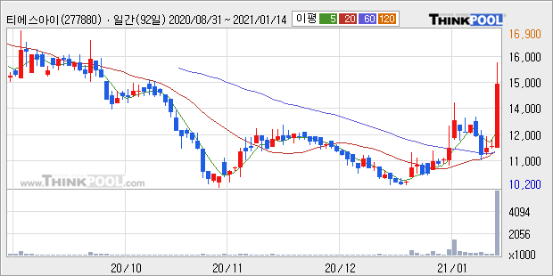 티에스아이 : 전고체 밧데리 관련주로 강세
