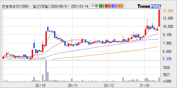 한농화성 : 전고체 밧데리 관련주로 강세