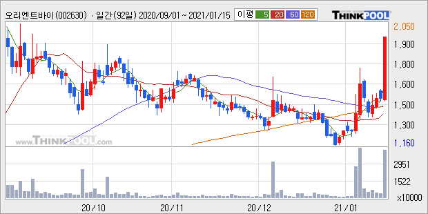 2021.01.15 상한가 종목 분석 (오리엔트바이오, 지니틱스, 한국파마 등등)