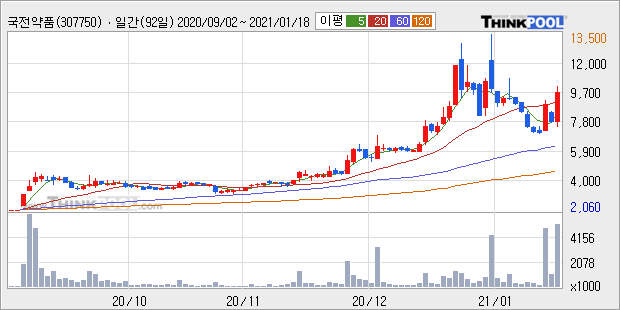 국전약품 : 국내 최대 나파모스타트 생산 사실 부각 추정