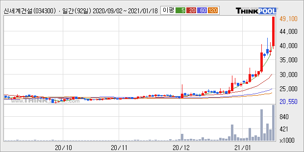 신세계건설 : 이재명 테마주로 강세 추정