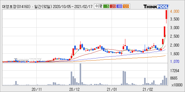 대영포장 : 쿠팡 미 증시 상장 이슈에 포장지 업종 강세 지속
