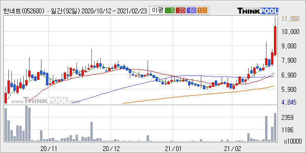 한네트 : 美 재무장관 ‘디지털화폐’ 언급 소식에 관련주 강세