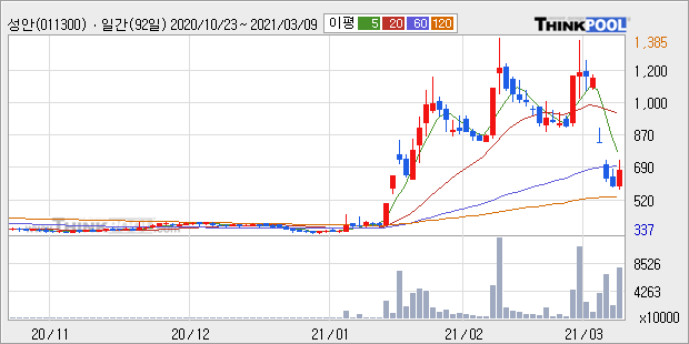 성안 : 단기 낙폭 과대 및 이재명 테마주로 강세 추정