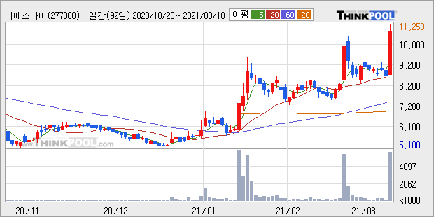 티에스아이 : 삼성SDI 차세대 전고체 배터리 사상 최대 투자 소식에 수혜주로 부각
