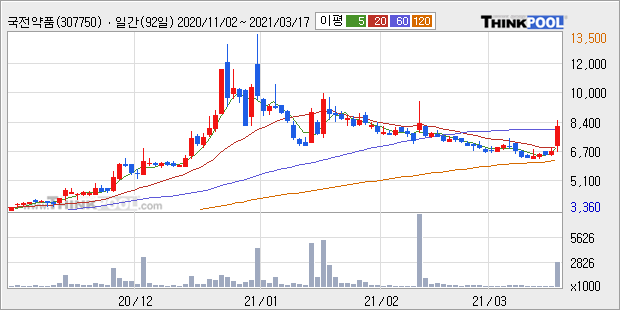 국전약품 : 코로나 치료제 특허 출원 이슈에 강세