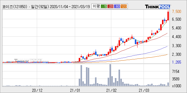 코이즈 : 이재명 테마주로 강세 추정