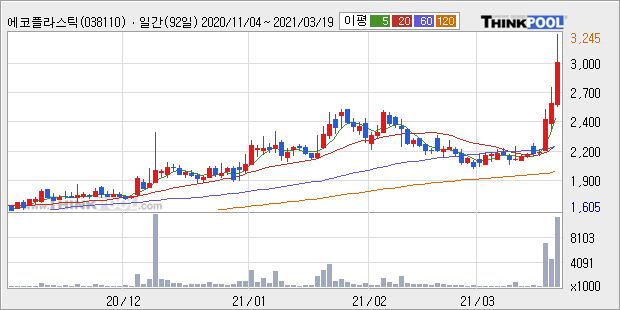 에코플라스틱 : 이재명 테마주로 강세 추정
