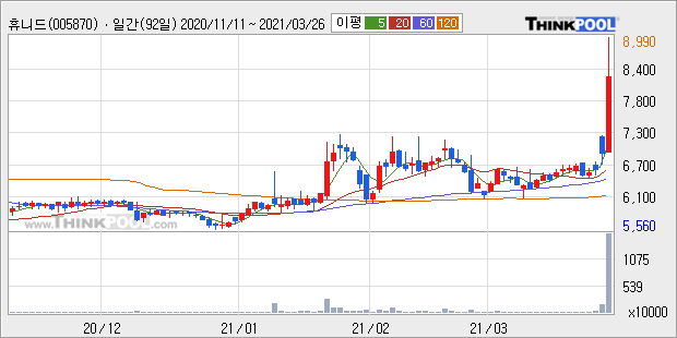 휴니드 : 윤석열 테마주로 강세 추정