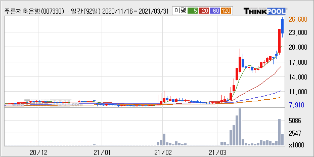 푸른저축은행 : 윤석열 테마주로 강세 추정