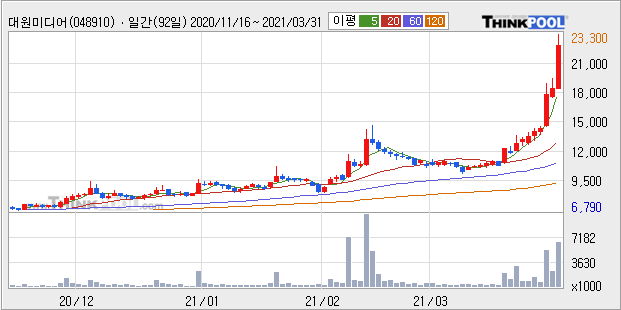 대원미디어 : 자회사를 통해서 일본 중국 웹툰 시장 공략한다는 모멘텀 지속